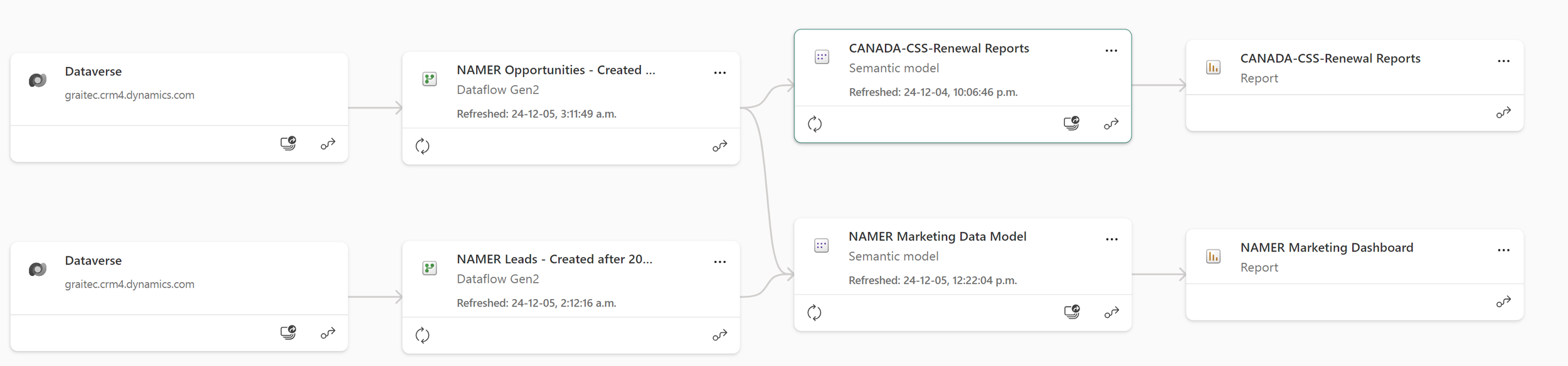 Dataflows: Think of dataflows as reusable pipelines. Instead of cleaning the same data for every report, you create a dataflow once, and it feeds clean, consistent data into all your dashboards. For example, you could use a dataflow to centralize sales pipeline data from your CRM and make it available for everyone to use in their reports.